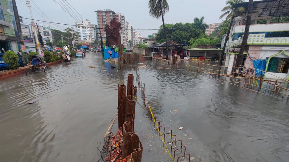 The downpour began around 12:00pm with thunder and lightning. The intensity of the rain was so strong that the surroundings turned dark. The rain continued for more than an hour, flooding roads and alleys with knee- to waist-deep water.According to Zahidul Islam, a forecasting officer at the Patenga Meteorological Office, rainfall is expected to continue. He said the rain increased after noon and may persist until Wednesday.